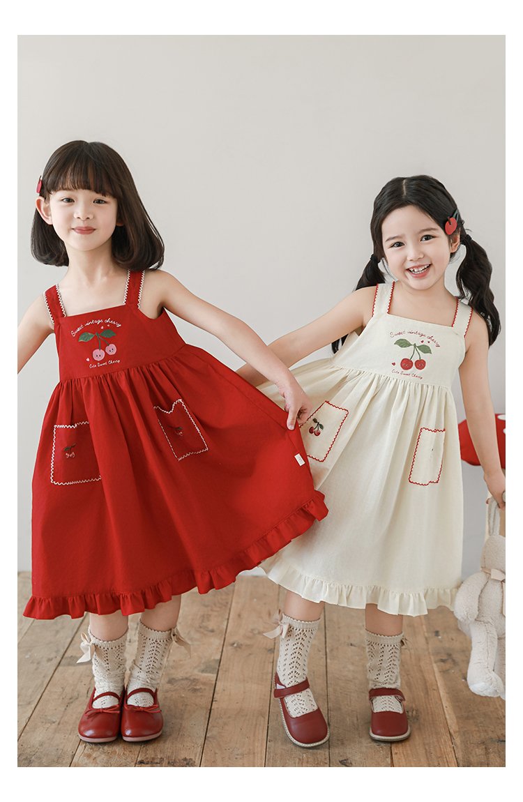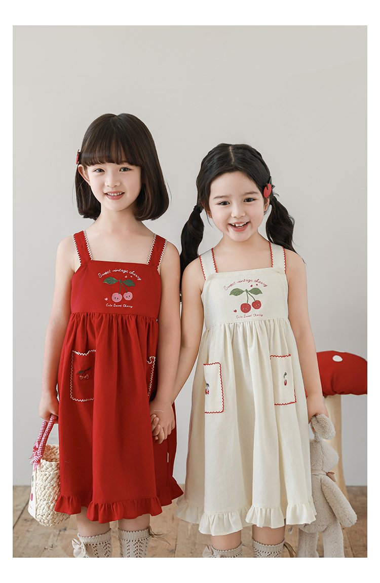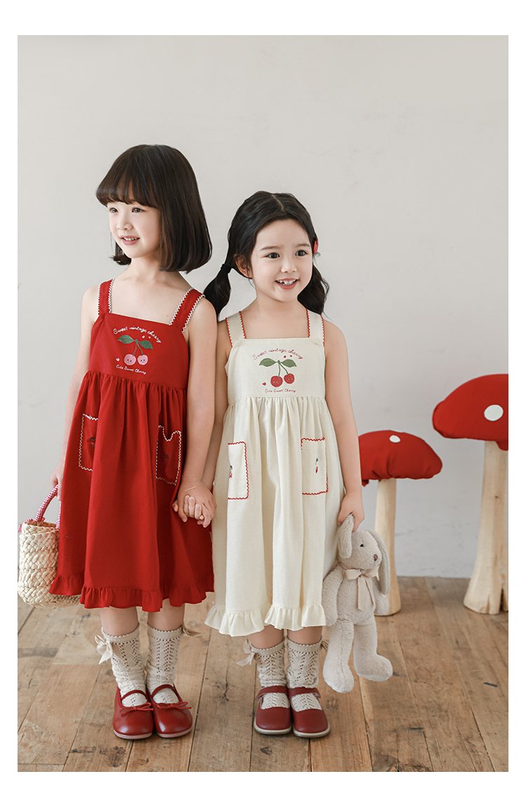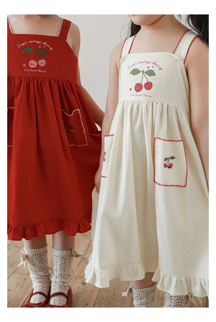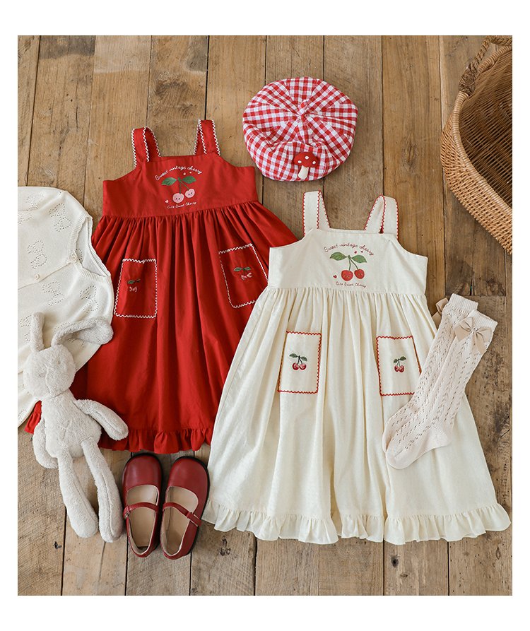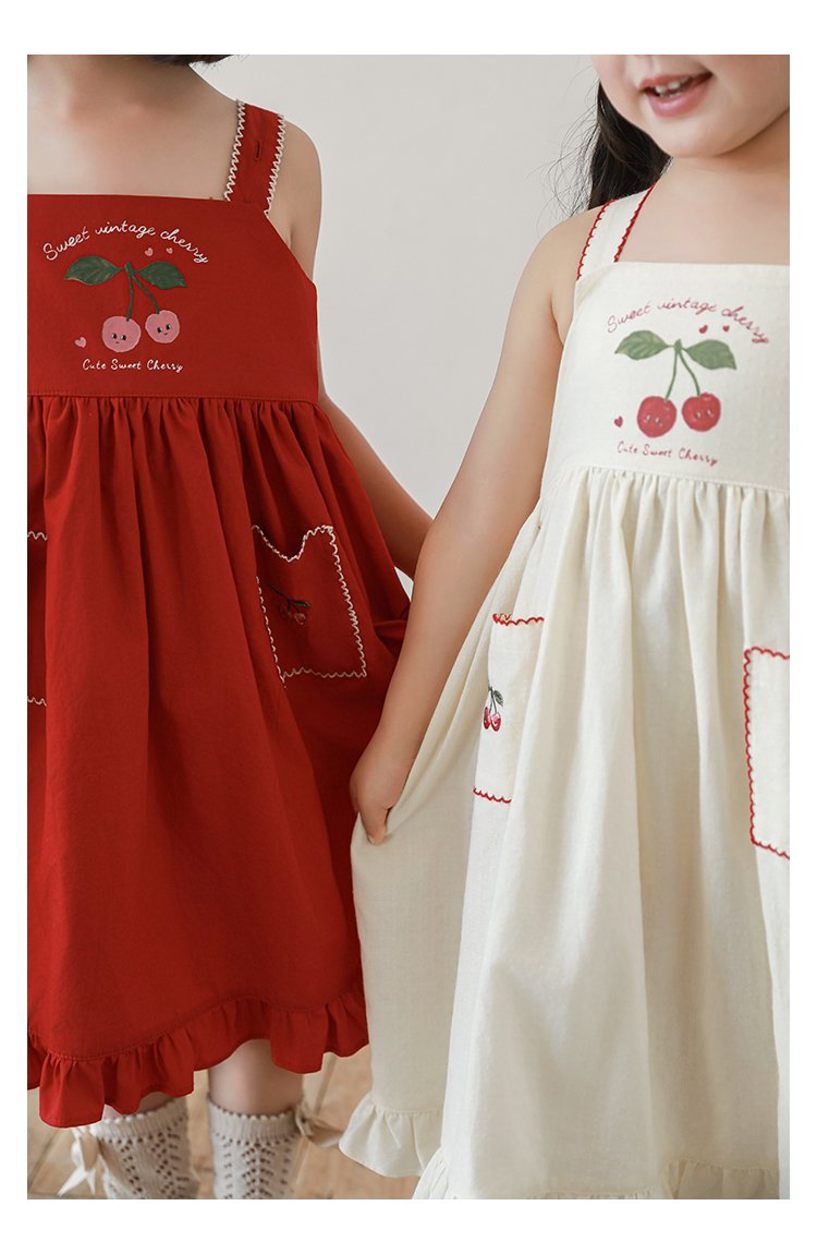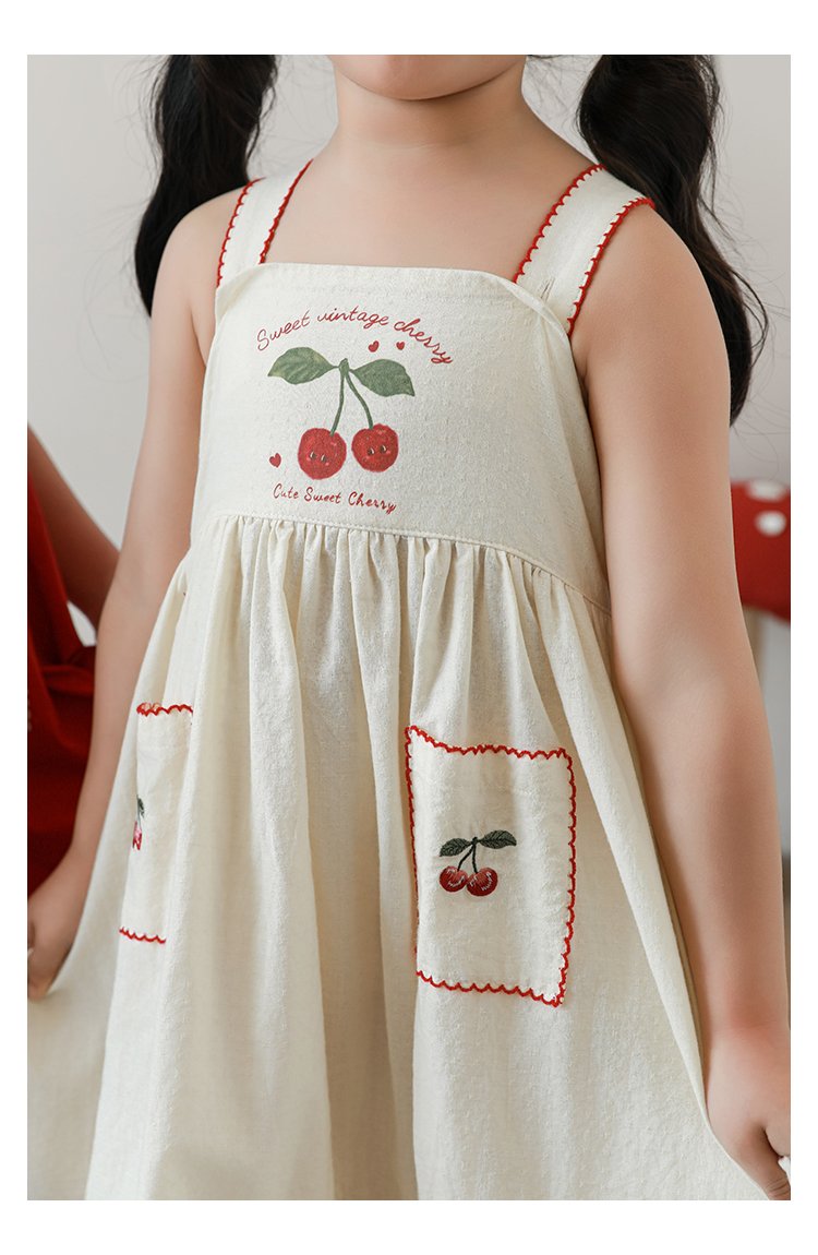 HomeShop -01For babyKidswearEmbroidery Cherries Beige Summer Dress