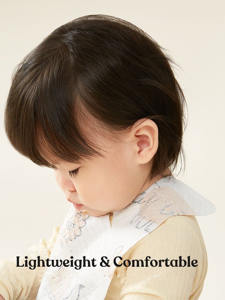 ✿ Feather-Light Design: Our bibs are as light and thin as a feather, ensuring they don’t press on your baby’s delicate cervical spine, providing maximum comfort during mealtimes.