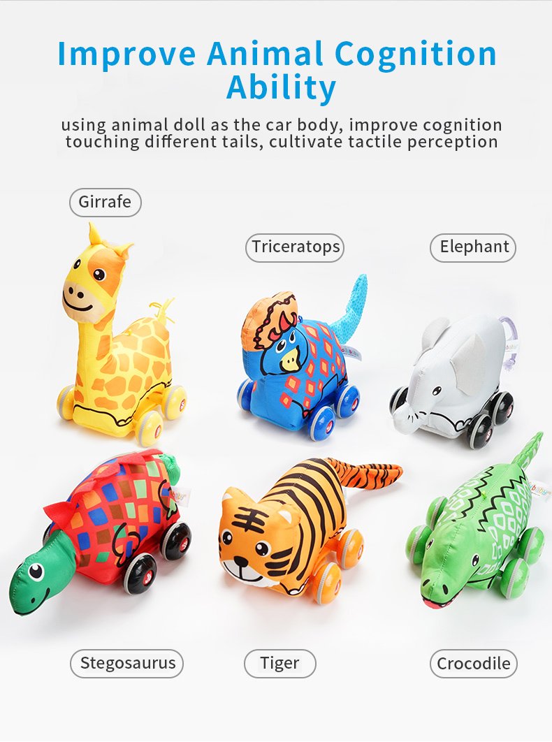 Toddlers Durable Animal Dinosaur Tiger Pull Back Car Toy soft toy car stuffed plush cars toys for children.