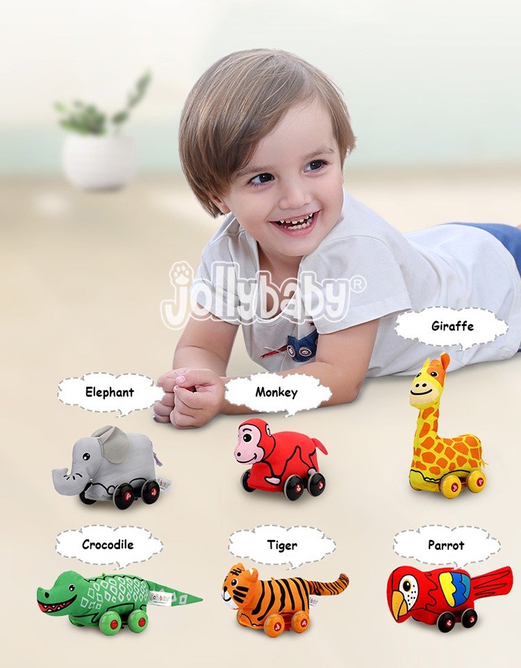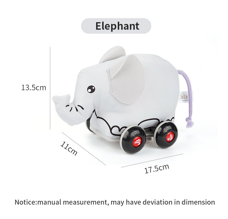 Polyester Washable Baby Educational Sensory Toy Stuffed Pull Back Animal Toy Soft Fabric.
