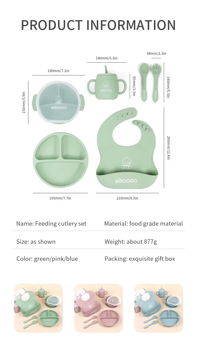 Non-toxic Strong Suction Bowl, Spoon Set, Feeding Bib, Baby Silicone cup And Plate Eating Set